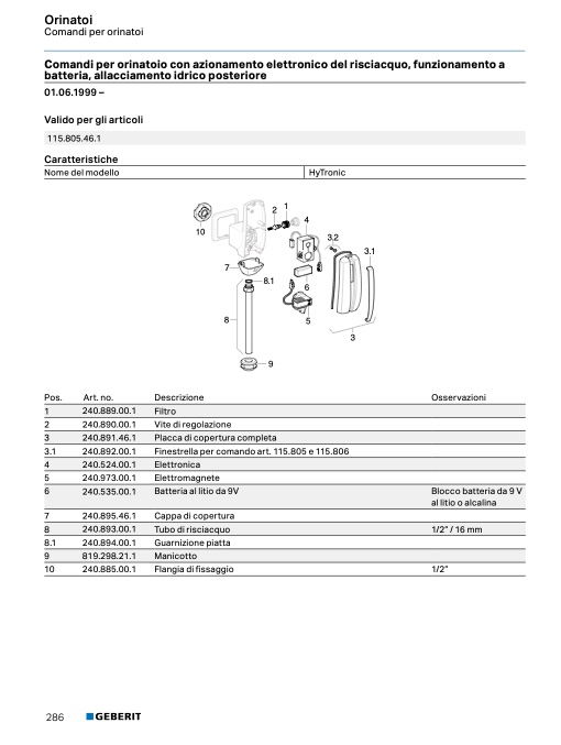Comandi per orinatoio con azionamento elettronico del risciacquo, funzionamento a