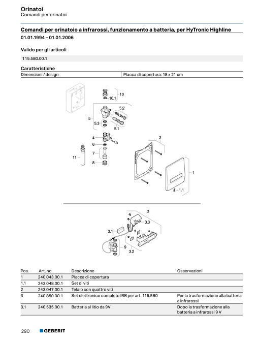 Comandi per orinatoio a infrarossi, funzionamento a batteria, per HyTronic Highline