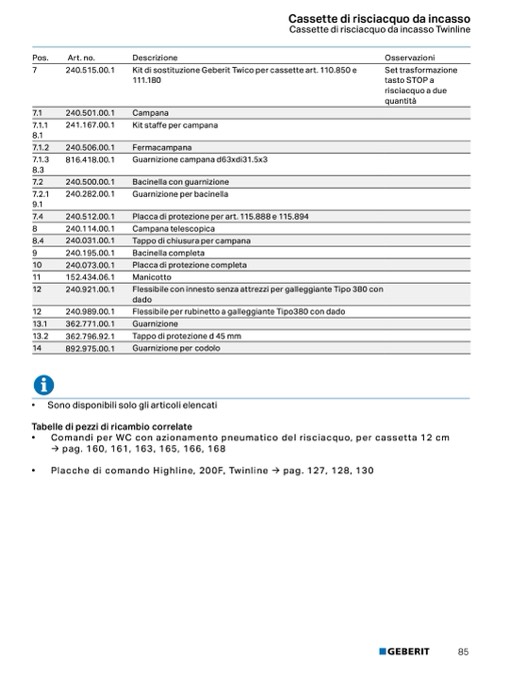 Placche di comando Highline, 200F, Twinline → pag. 127, 128, 130