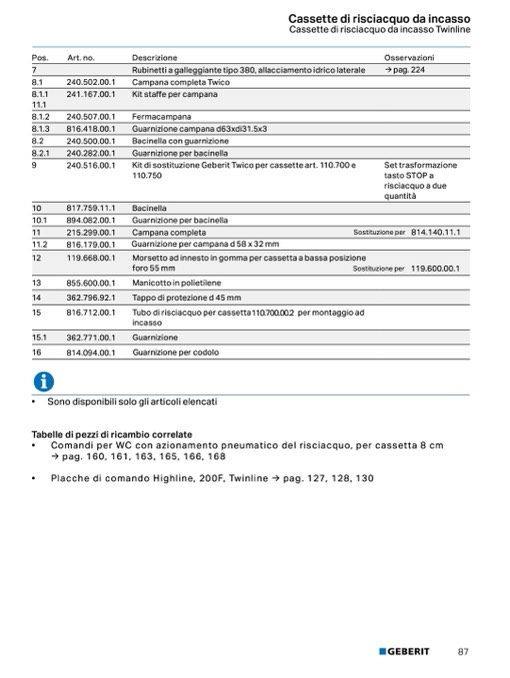 • Placche di comando Twinline, per risciacquo a due quantità → pag. 119