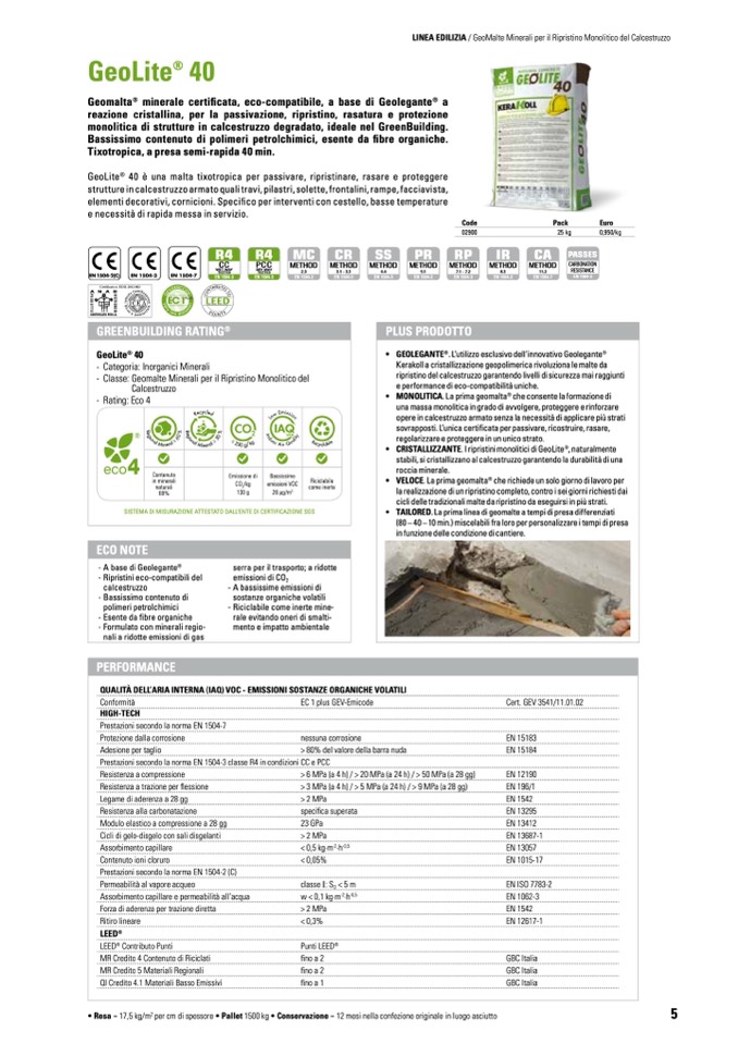 Linea eDiLiZia / GeoMalte Minerali per il Ripristino Monolitico del Calcestruzzo