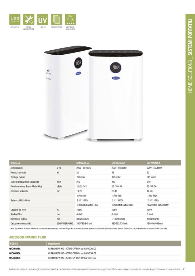 Per la nostra politica di continuo miglioramento dei prodotti, le caratteristiche e i dati sopra riportati possono essere soggetti a modifiche senza obbligo di preavviso. Le immagini dei prodotti e accessori sono indicative. 21