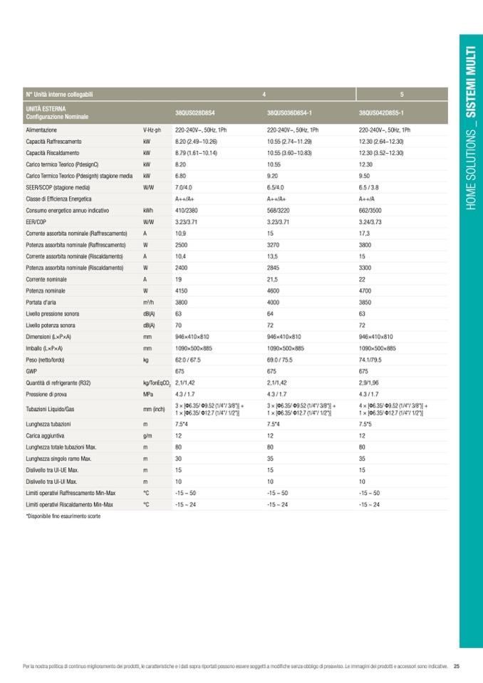Per la nostra politica di continuo miglioramento dei prodotti, le caratteristiche e i dati sopra riportati possono essere soggetti a modifiche senza obbligo di preavviso. Le immagini dei prodotti e accessori sono indicative. 25