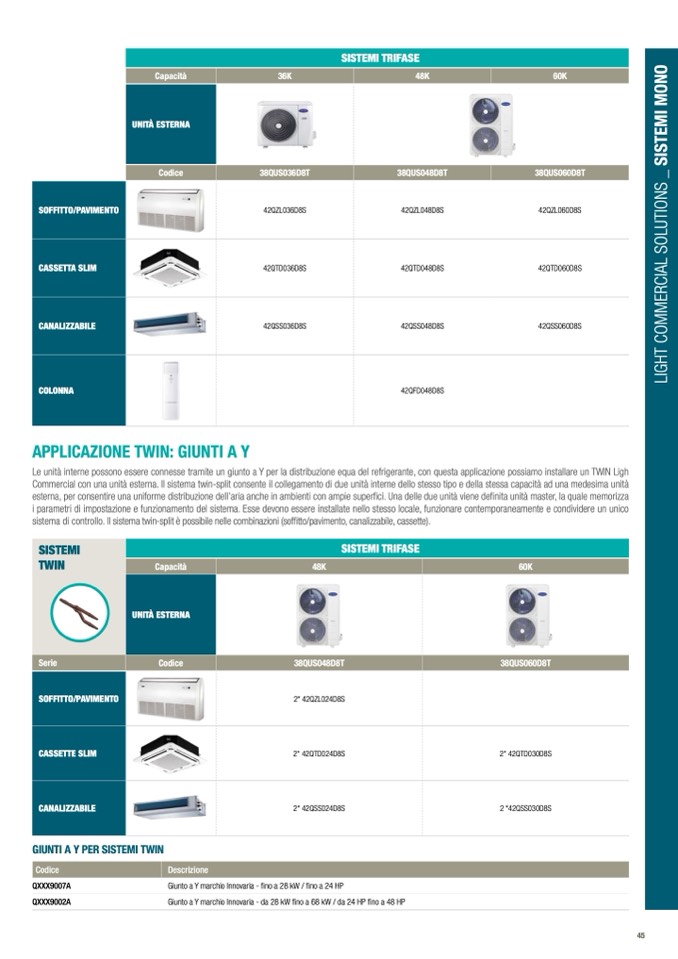 sistema di controllo. Il sistema twin-split è possibile nelle combinazioni (soffitto/pavimento, canalizzabile, cassette).