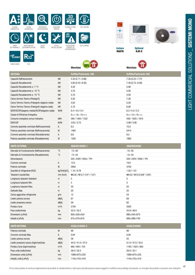Per la nostra politica di continuo miglioramento dei prodotti, le caratteristiche e i dati sopra riportati possono essere soggetti a modifiche senza obbligo di preavviso. Le immagini dei prodotti e accessori sono indicative.