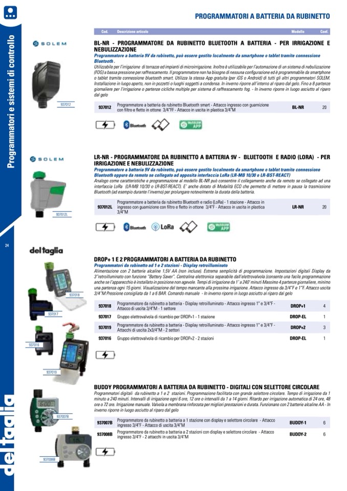 3”retroilluminato con funzione “Battery Saver”. Centralina elettronica separabile dall’elettrovalvola (consente una facile programmazione