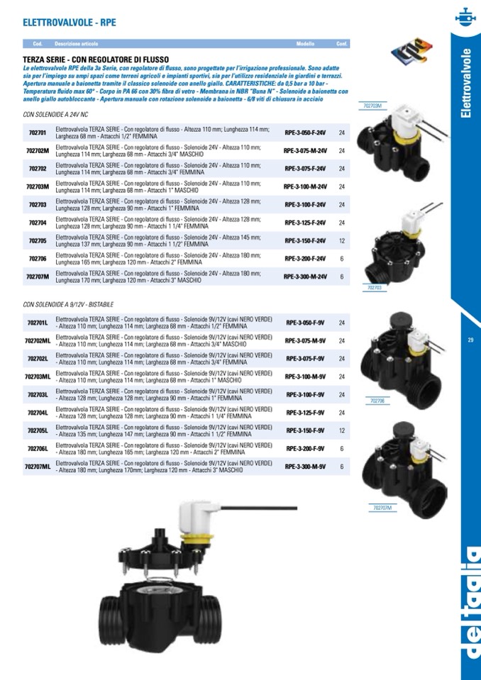 Le elettrovalvole RPE della 3a Serie, con regolatore di flusso, sono progettate per l’irrigazione professionale. Sono adatte