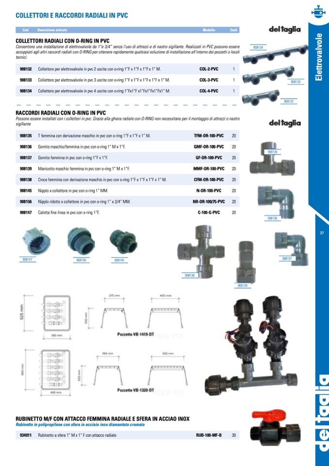 Consentono una installazione di elettrovalvole da 1”e 3/4” senza l’uso di attrezzi e di nastro sigillante. Realizzati in PVC possono essere