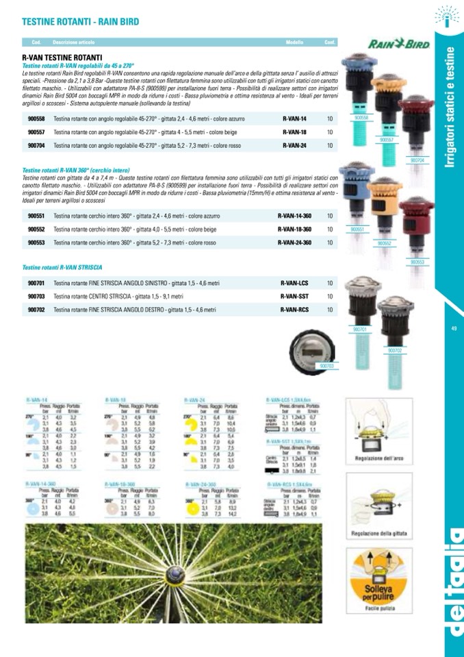 Le testine rotanti Rain Bird regolabili R-VAN consentono una rapida regolazione manuale dell’arco e della gitttata senza l’ ausilio di attrezzi