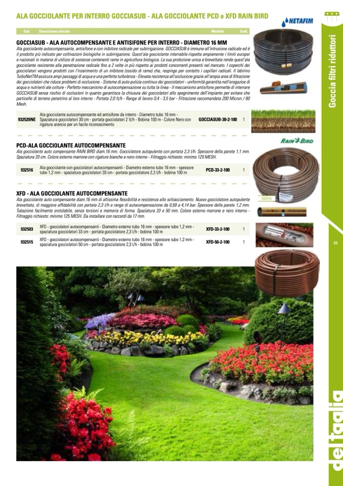 spaziatura gocciolatori 33 cm - portata gocciolatore 2,3 l/h - bobina 100 m