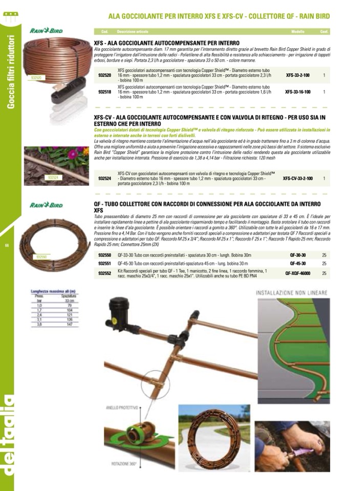 Ala gocciolante autocompensante diam. 17 mm garantita per l’interramento diretto grazie al brevetto Rain Bird Copper Shield in grado di