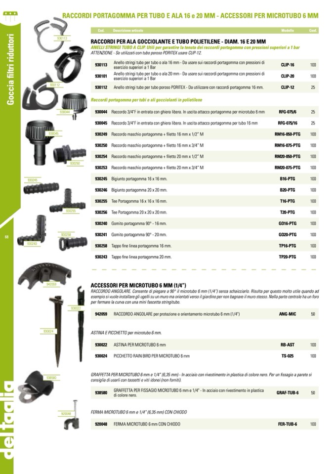 Raccordi portagomma per tubi e ali gocciolanti in polietilene