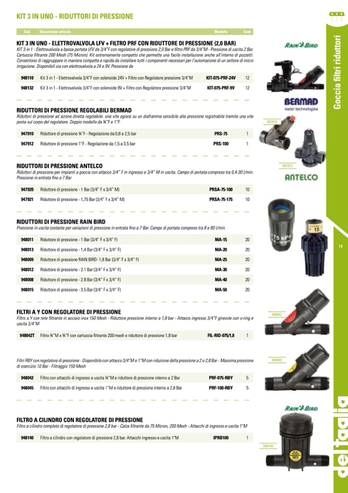 irrigazione. Disponibili sia con elettrovalvola a 24 e 9V. Pressione da