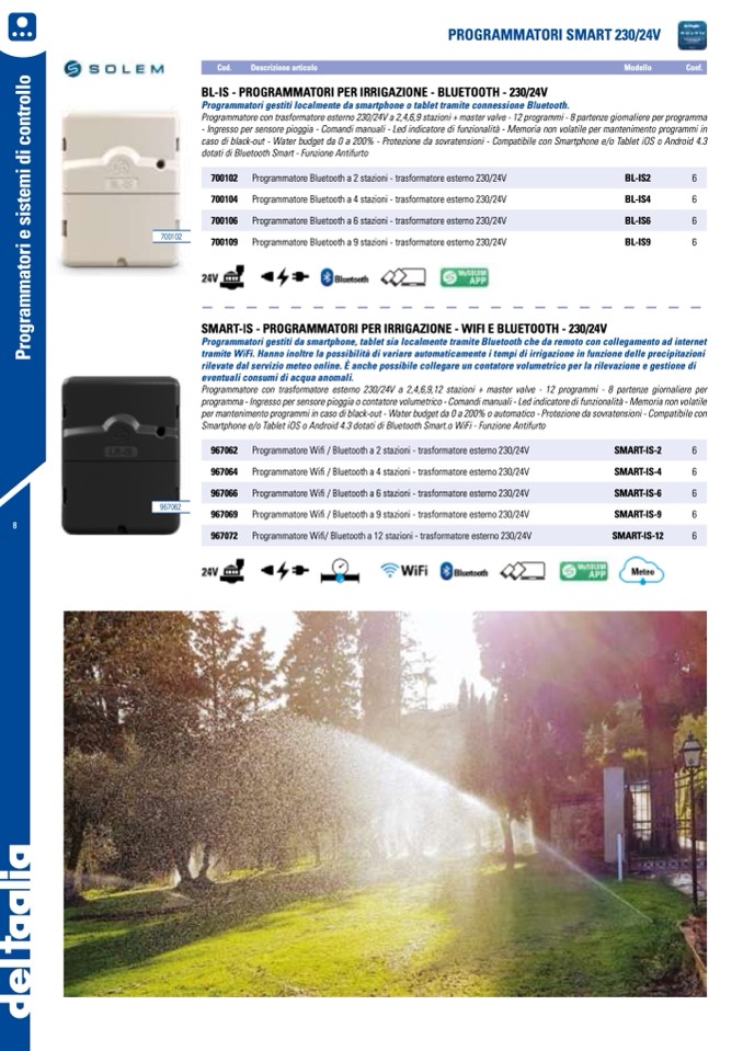 per mantenimento programmi in caso di black-out - Water budget da 0 a 200% o automatico - Protezione da sovratensioni - Compatibile con