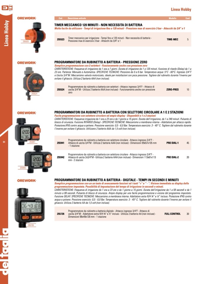 Molto facile da utilizzare - Tempi di irrigazione fino a 120 minuti - Pressione max di esercizio 3 bar - Attacchi da 3/4” e 1
