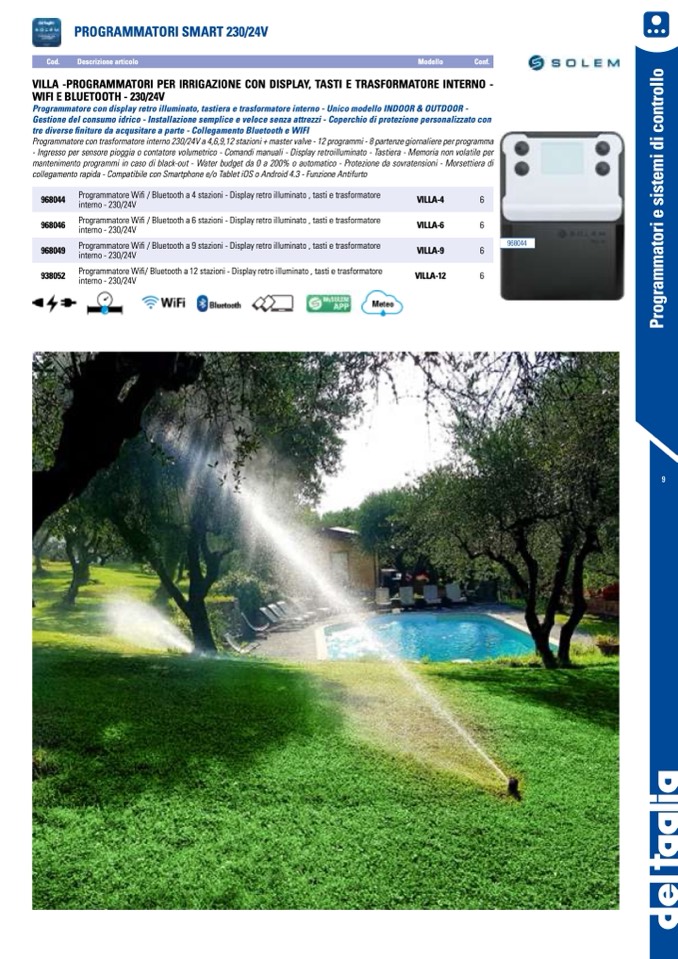 mantenimento programmi in caso di black-out - Water budget da 0 a 200% o automatico - Protezione da sovratensioni - Morsettiera di