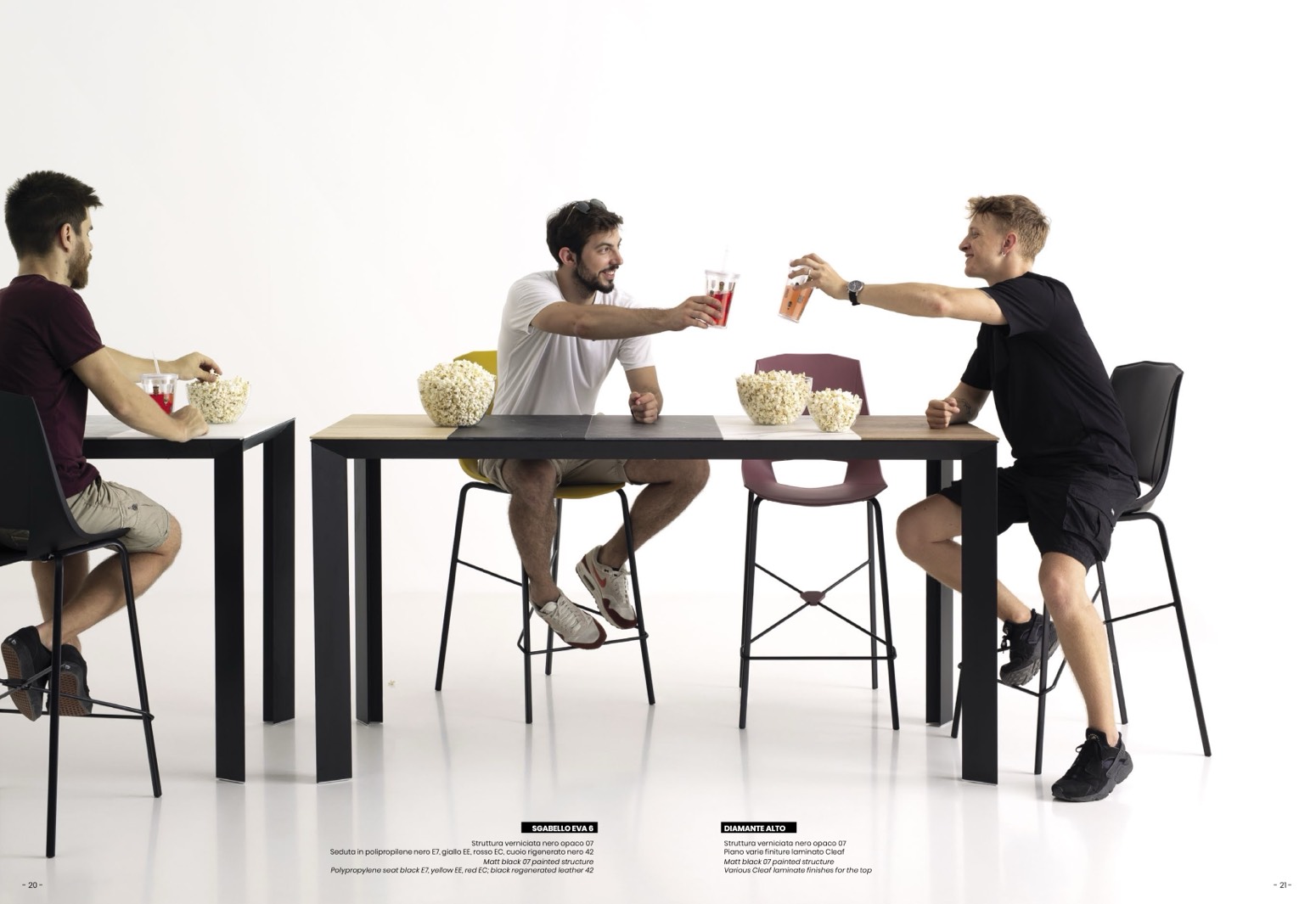 Seduta in polipropilene nero E7, giallo EE, rosso EC, cuoio rigenerato nero 42