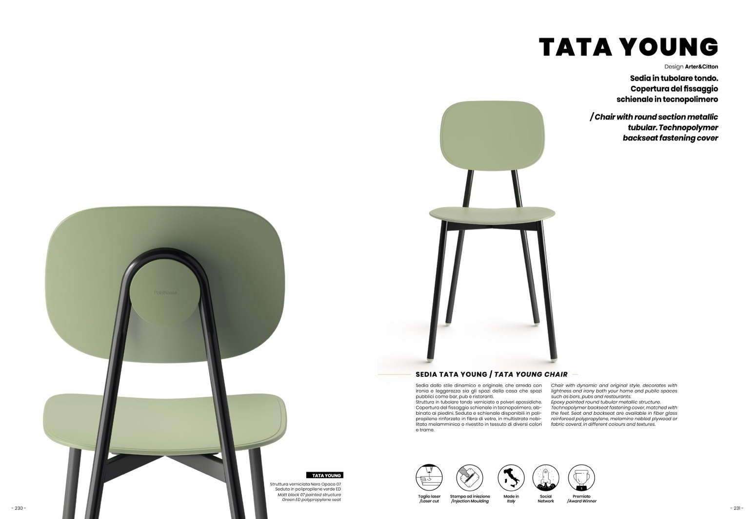binato ai piedini. Seduta e schienale disponibili in poli-
