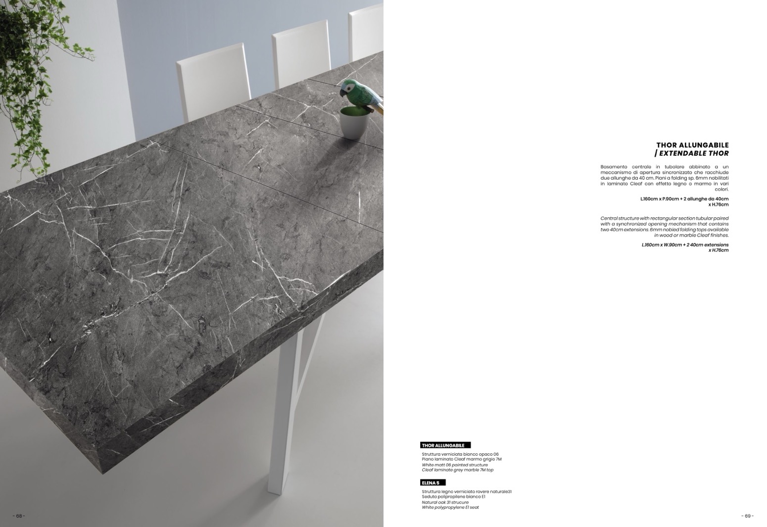 due allunghe da 40 cm. Piani a folding sp. 6mm nobilitati