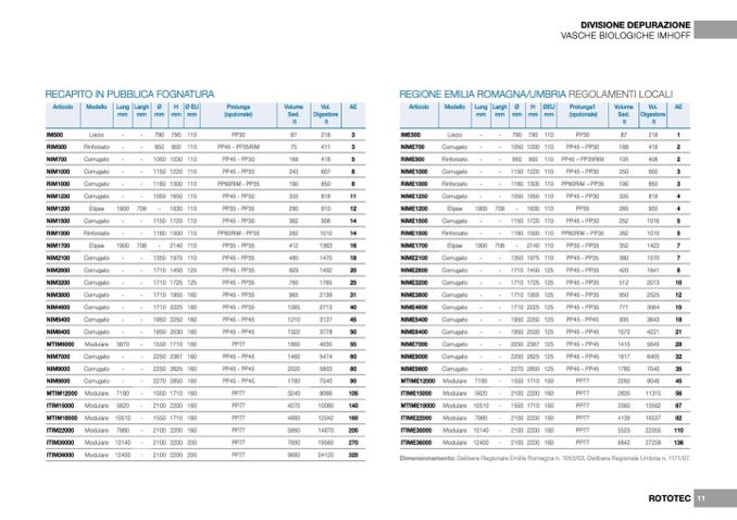 Dimensionamento: Delibera Regionale Emilia Romagna n. 1053/03, Delibera Regionale Umbria n. 1171/07.