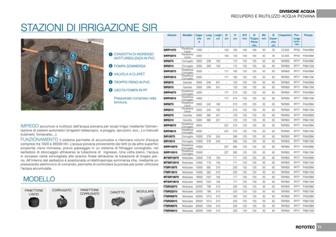 compresi tra 1000 e 36000 litri. L’acqua piovana proveniente dai tetti (o da altre superfici