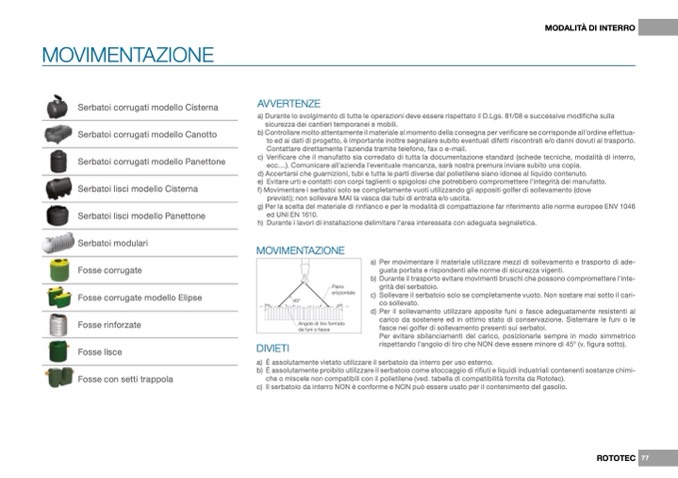 f) Movimentare i serbatoi solo se completamente vuoti utilizzando gli appositi golfer di sollevamento (dove