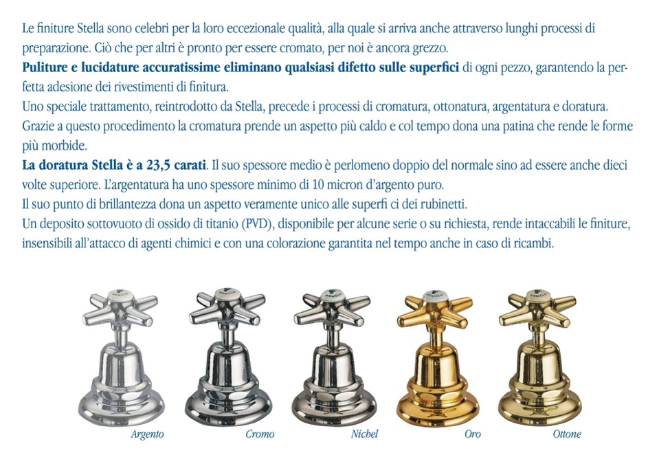 Uno speciale trattamento, reintrodotto da Stella, precede i processi di cromatura, ottonatura, argentatura e doratura.