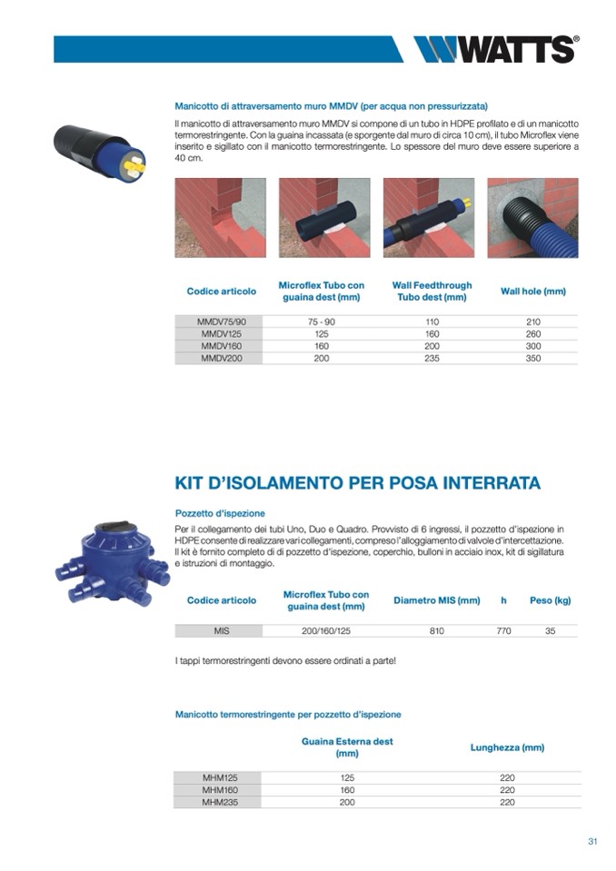 termorestringente. Con la guaina incassata (e sporgente dal muro di circa 10 cm), il tubo Microflex viene