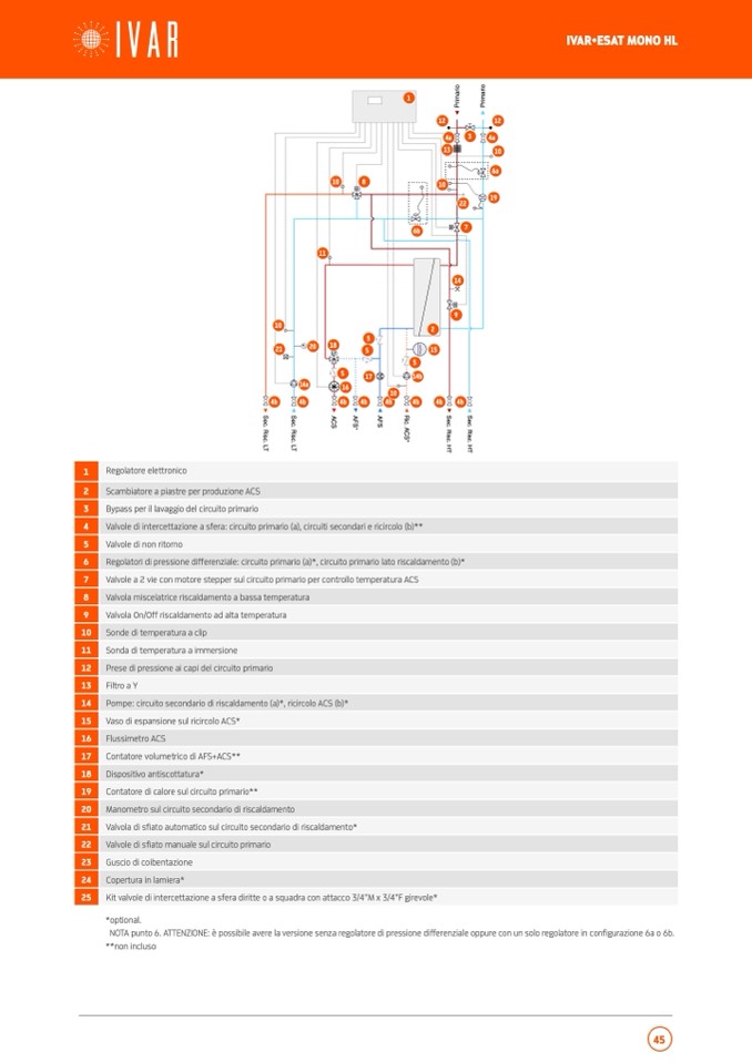 Regolatori di pressione differenziale: circuito primario (a)*, circuito primario lato riscaldamento (b)*