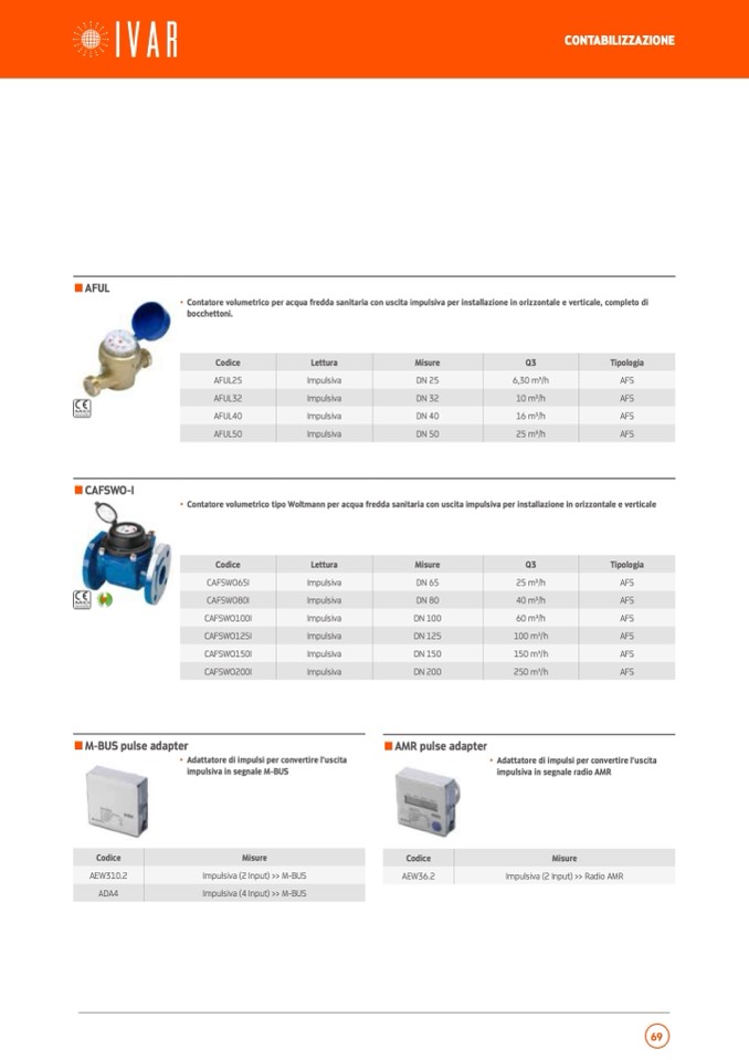 • Contatore volumetrico tipo Woltmann per acqua fredda sanitaria con uscita impulsiva per installazione in orizzontale e verticale