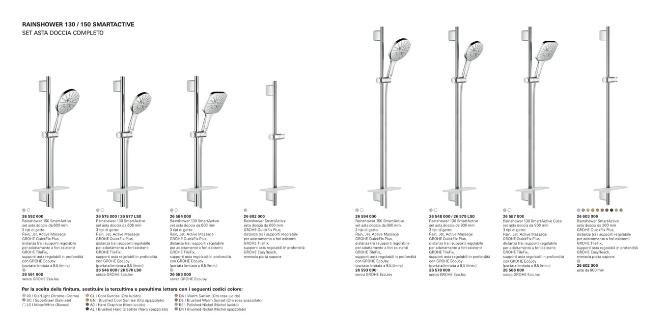 Per la scelta della finitura, sostituire la terzultima e penultima lettera con i seguenti codici colore: