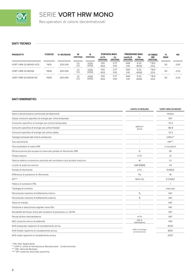 * NA: Non Applicabile.