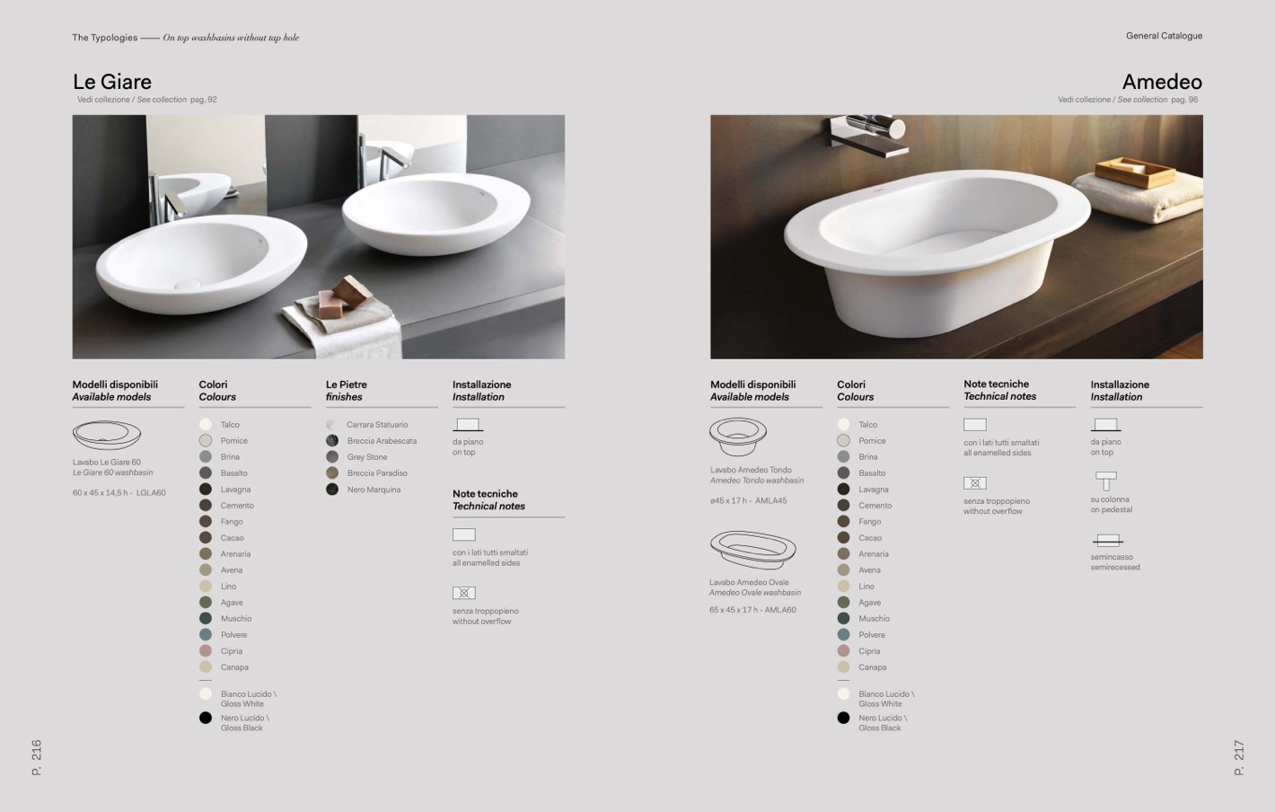 The Typologies ––––– On top washbasins without tap hole