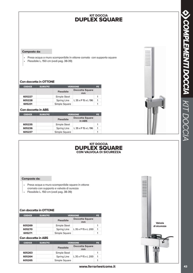 • Flessibile L. 150 cm (vedi pag. 38-39)