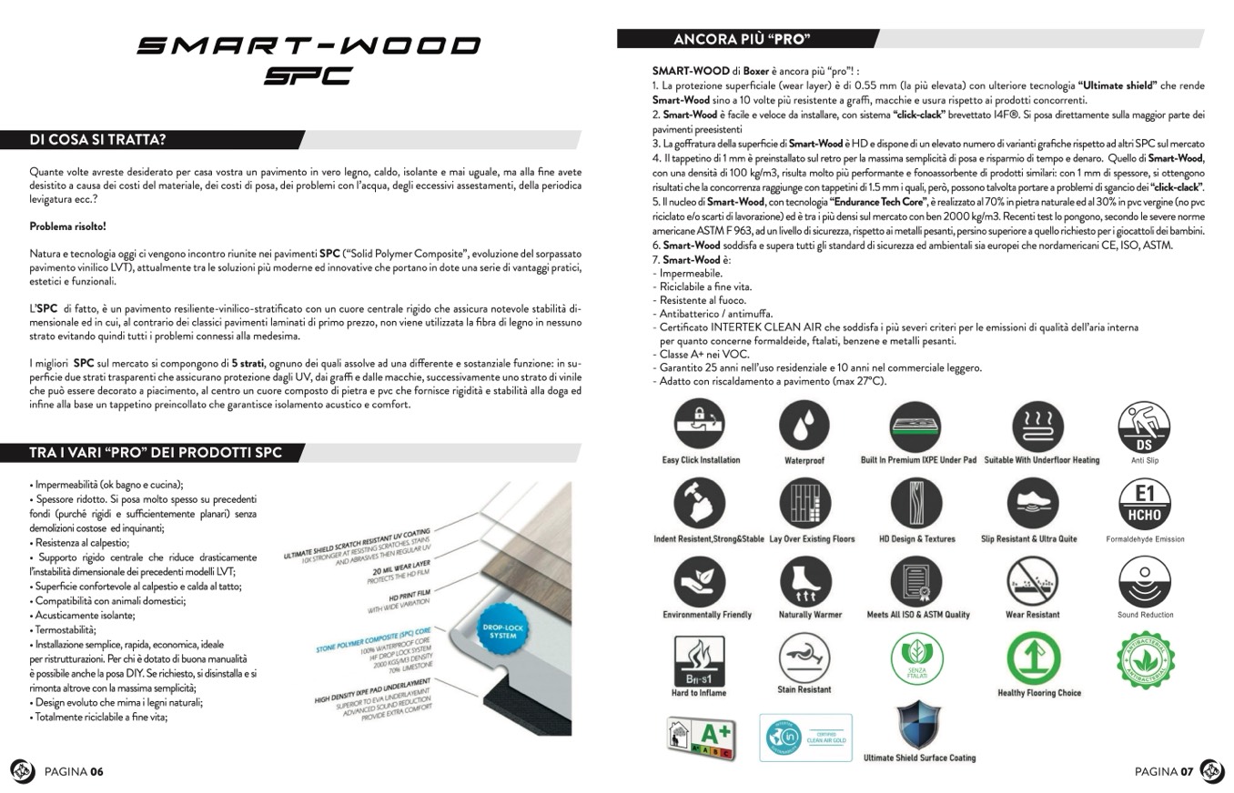 5. Il nucleo di Smart-Wood, con tecnologia “Endurance Tech Core”, è realizzato al 70% in pietra naturale ed al 30% in pvc vergine (no pvc
