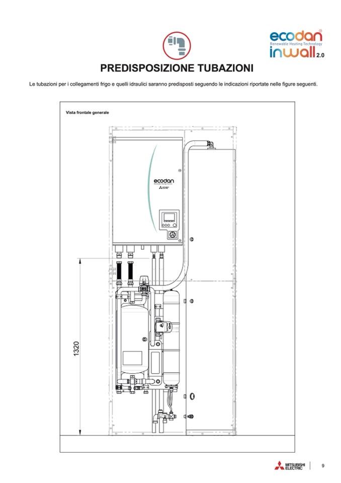 Le tubazioni per i collegamenti frigo e quelli idraulici saranno predisposti seguendo le indicazioni riportate nelle figure seguenti.