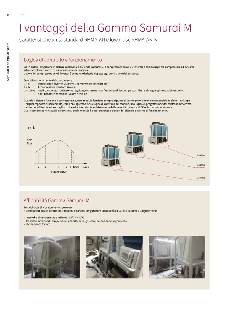 Sia in sistemi singoli che in sistemi costituiti da più unità Samurai M, il compressore scroll DC inverter è sempre il primo compressore ad avviarsi