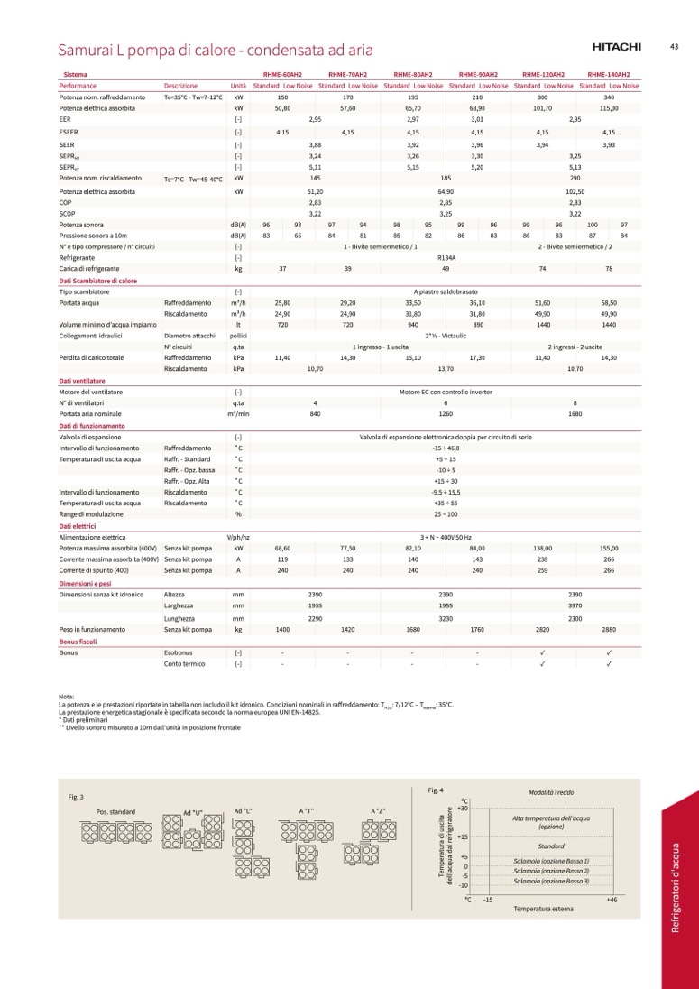 La potenza e le prestazioni riportate in tabella non includo il kit idronico. Condizioni nominali in raffreddamento: T
