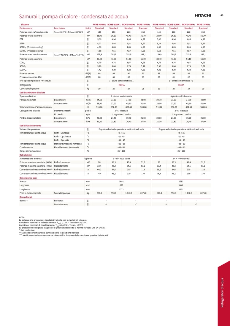 La potenza e le prestazioni riportate in tabella non includo il kit idronico.