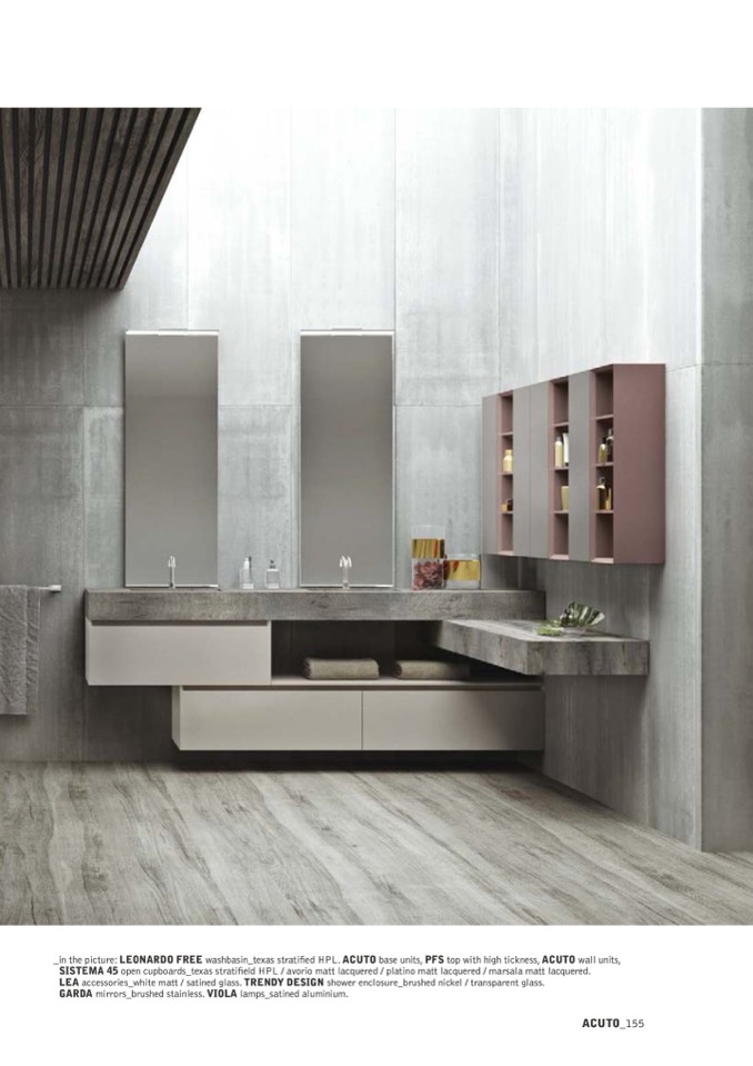 _in the picture: LEONARDO FREE washbasin_texas stratified HPL. ACUTO base units, PFS top with high tickness, ACUTO wall units,