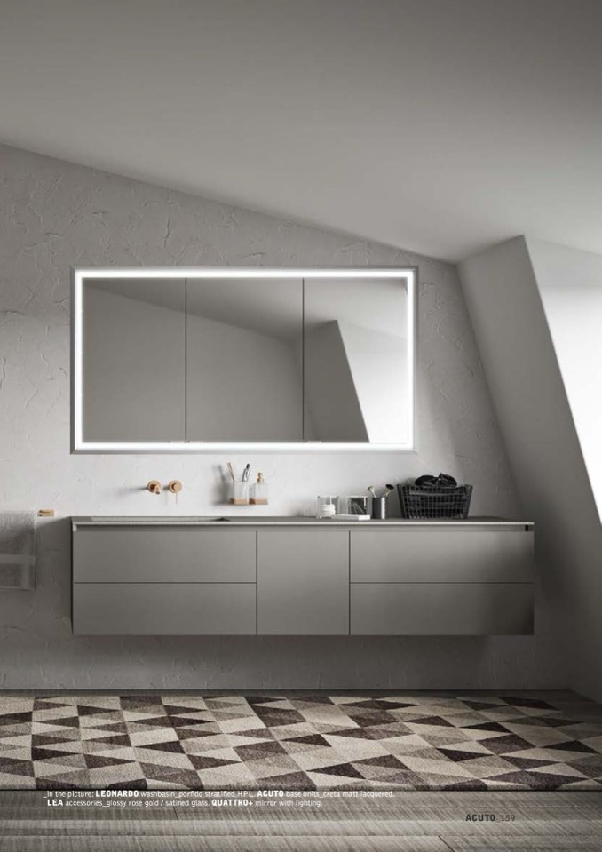 LEA accessories_glossy rose gold / satined glass. QUATTRO+ mirror with lighting.