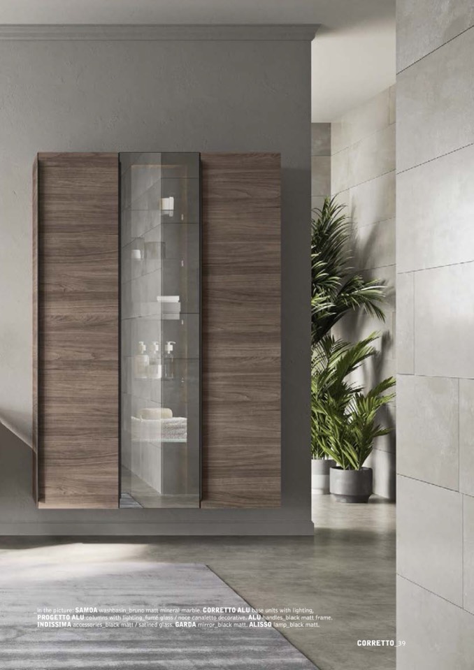 é glass / noce canaletto decorative. ALU handles_black matt frame.