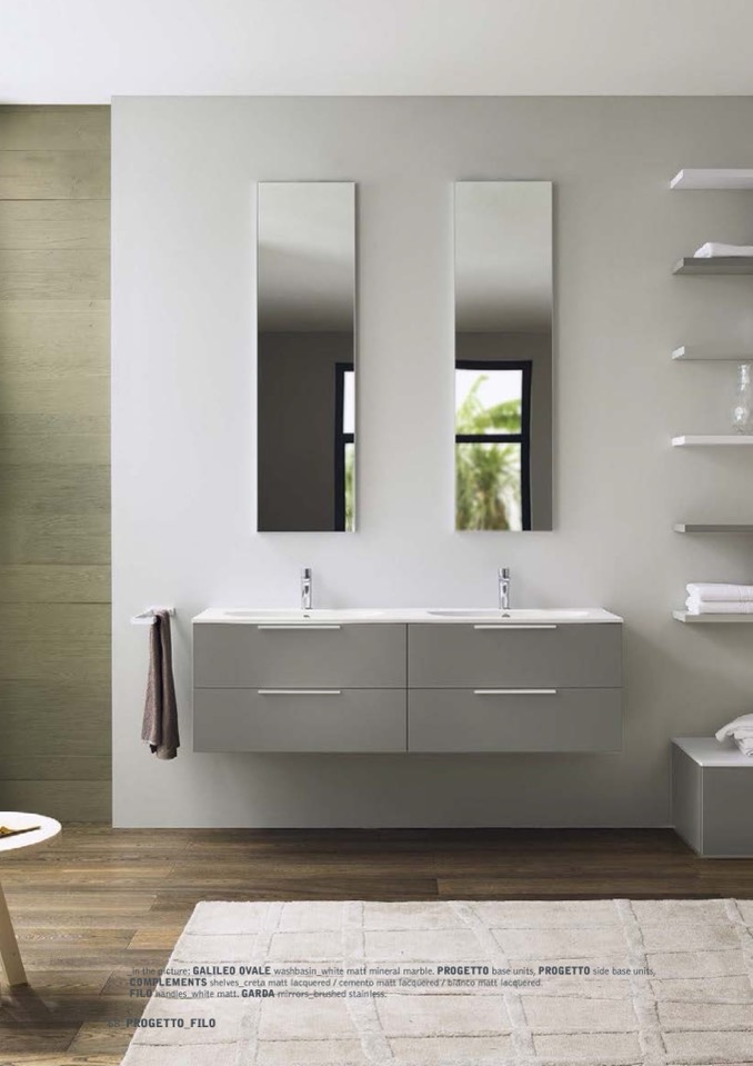 _in the picture: GALILEO OVALE washbasin_white matt mineral marble. PROGETTO base units, PROGETTO side base units,
