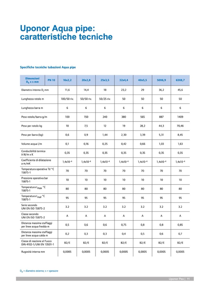 Specifiche tecniche tubazioni Aqua pipe