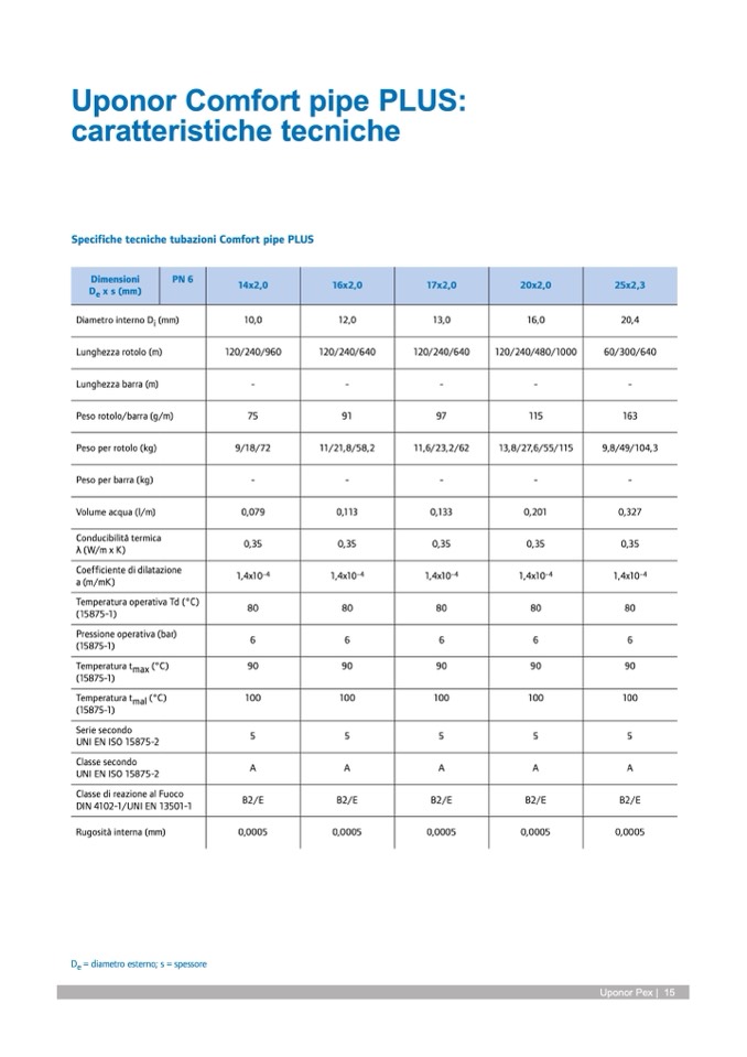 Specifiche tecniche tubazioni Comfort pipe PLUS