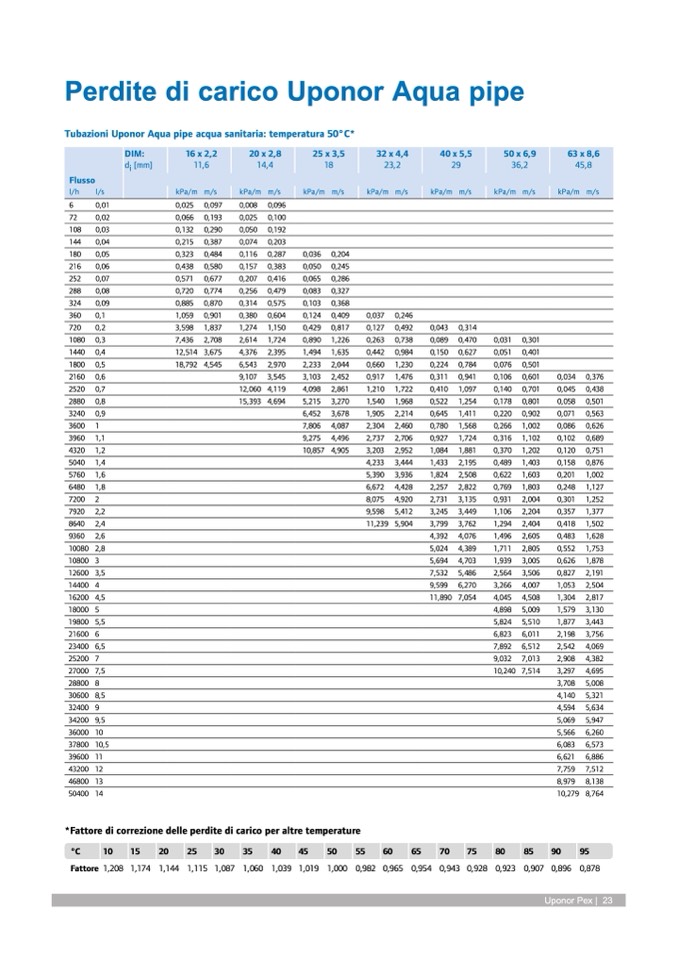 Tubazioni Uponor Aqua pipe acqua sanitaria: temperatura 50°C*