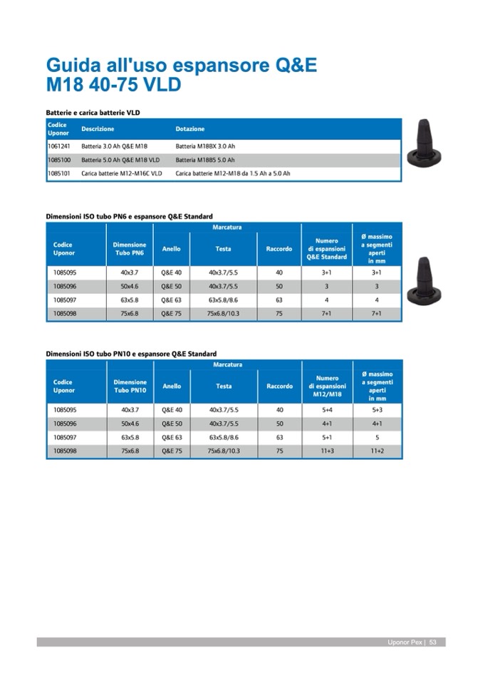 Dimensioni ISO tubo PN6 e espansore Q&E Standard
