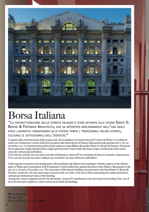 Following the renovation of its headquarters, Borsa Italiana (the Italian stock exchange) with the support of the Munici-