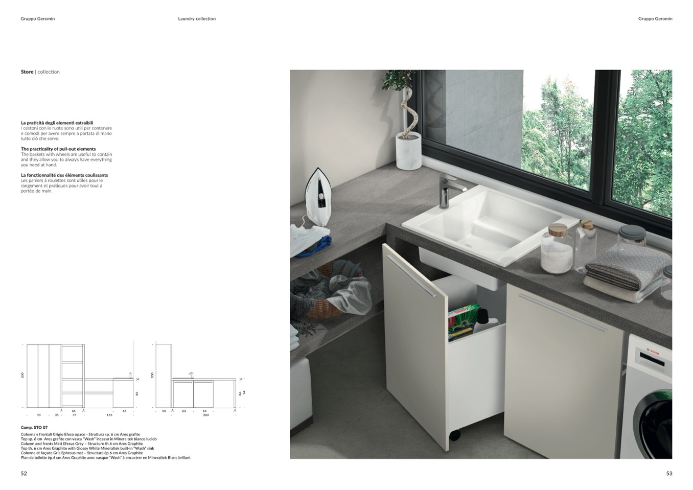 Top sp. 6 cm Ares grafi1t1e0 con vasca “Wash” incasso in Mineraltek bianco lucido
