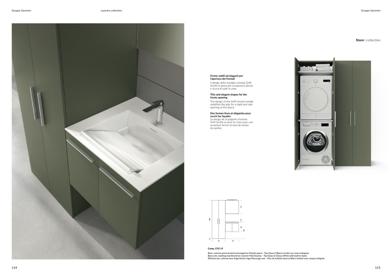 Base unit, washing machine/dryer column Matt Swamp – Top Geacryl Glossy White with built-in basin